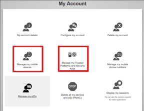 - Click on "Manage my mobile devices" or "Manage my Trusted Platforms and Security Keys"