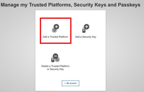 If you clicked on the Trusted Platforms and Security Keys option, click now on "Add a Trusted Platform" and follow the steps explained in the portal.