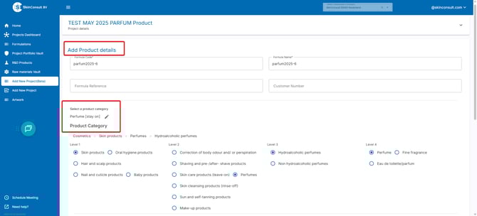 and fill in the Product Details, Product Category, Physical Form & Packaging.