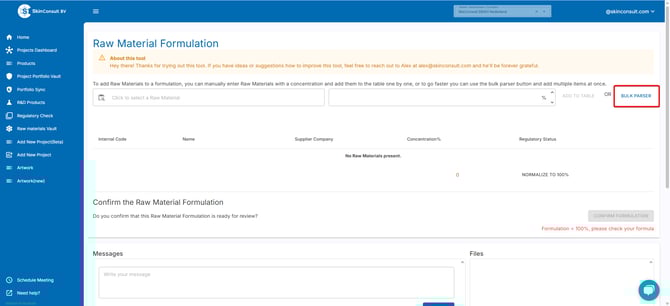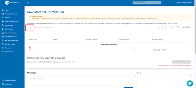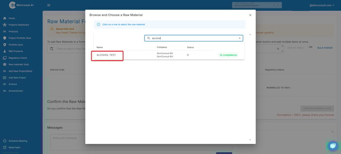 After uploading. SkinConsult will process the Raw Material Formula.