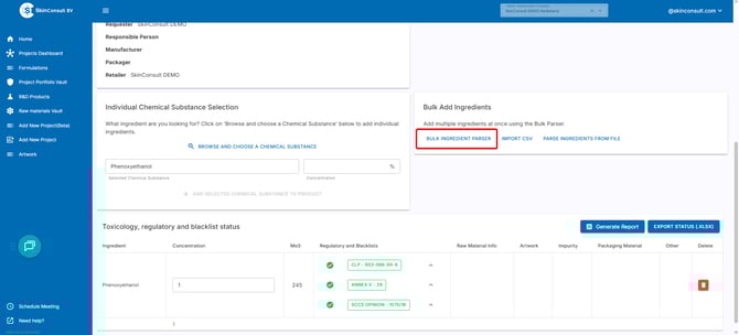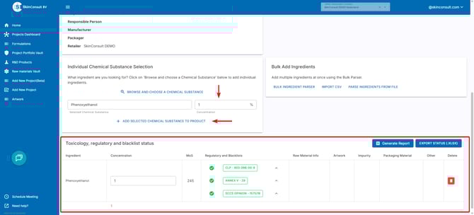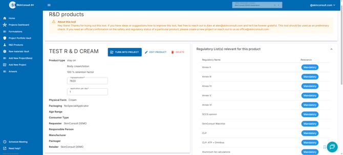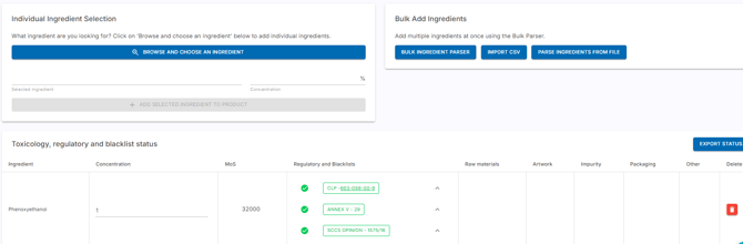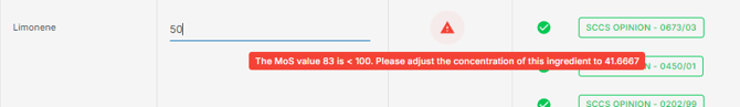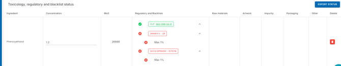 When making formulations you can check MoS values and which Annexes apply before putting it in production using our R&D tool.