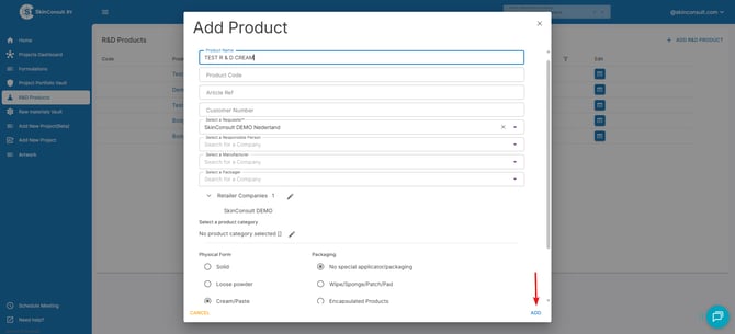 3. add the concentration of the chemical substance and press ADD SELECTED CHEMICAL SUBSTANCE TO PRODUCT.