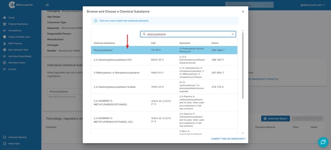 2. searchthe chemical substance you want to add and click on it.
